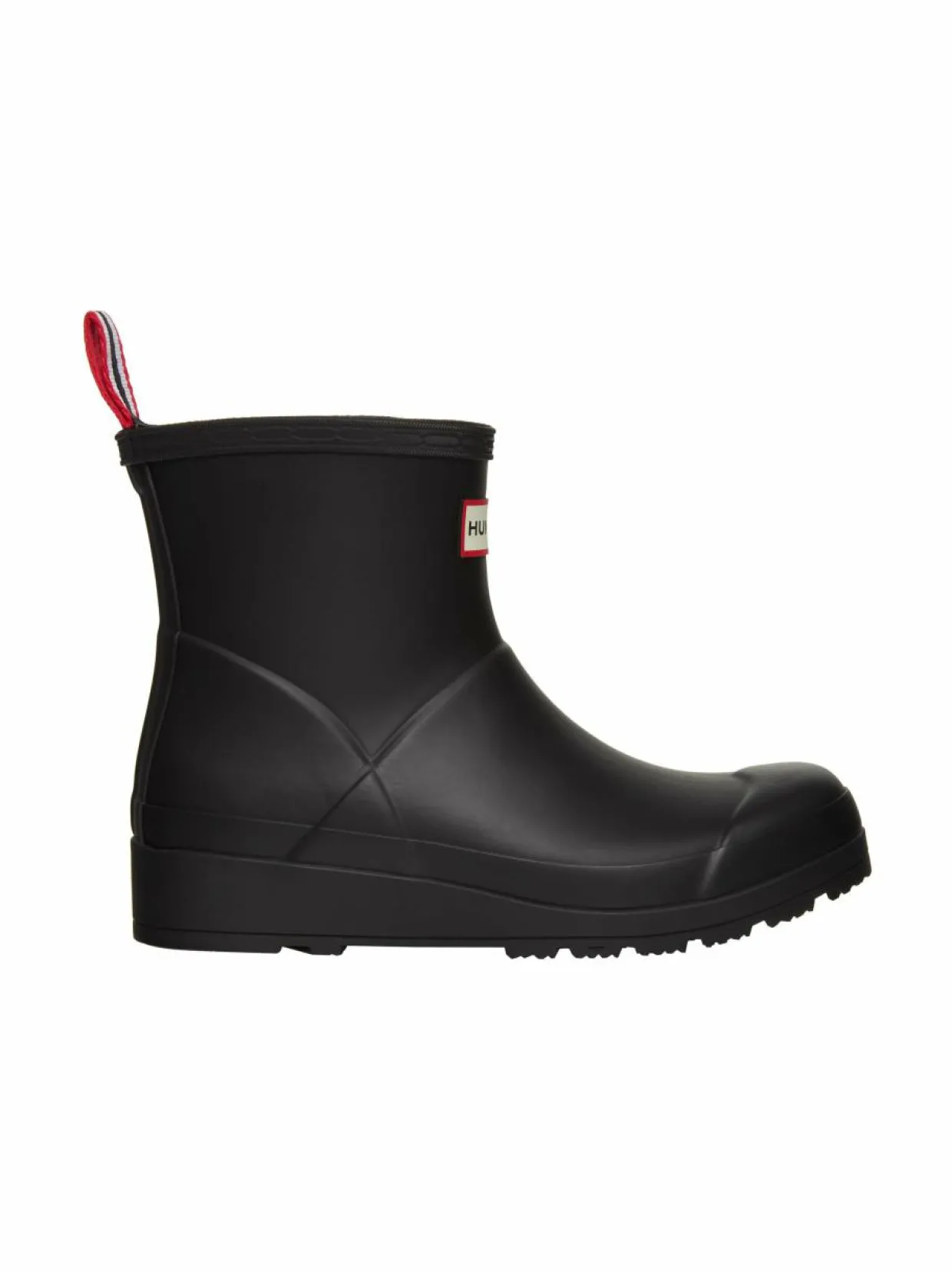 Hunter Play Short on 100 % vedenpitävä ja mukava kumisaapas, joka sopii täydellisesti sadepäiviin. Ikoninen saapas valmistettiin ensimmäisen kerran vuonna 1956. Niissä on matala varsi, viisto korko ja pehmeä tekstiiluvuori. Valmistettu kestävästä kumista, ja niissä on tukeva pohja, mikä tekee niistä ihanteelliset metsäkävelyille tai päivälle kaupungissa. Saappaiden varressa on kangaslenkki, mikä helpottaa niiden pukemista ja riisumista.