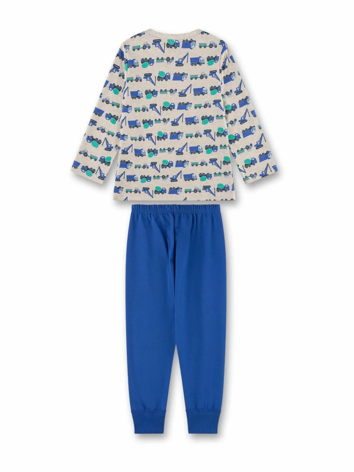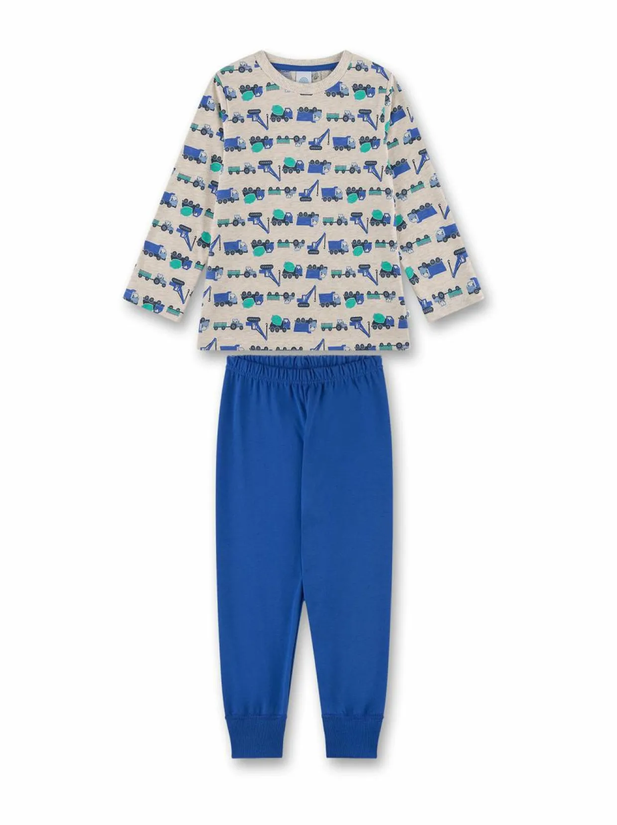 Työkoneprintillä koristeltu pyjama tuo iloa lapselle niin nukkumaan mentäessä kuin rauhallisina kotihetkinä. Pitkähihainen paita ja joustavat housut tarjoavat liikkumisvapautta. 100 % puuvillasta valmistettu materiaali on pehmeä ja hengittävä, joten se tuntuu miellyttävältä ihoa vasten sekä kestää käyttöä ja pesua.
