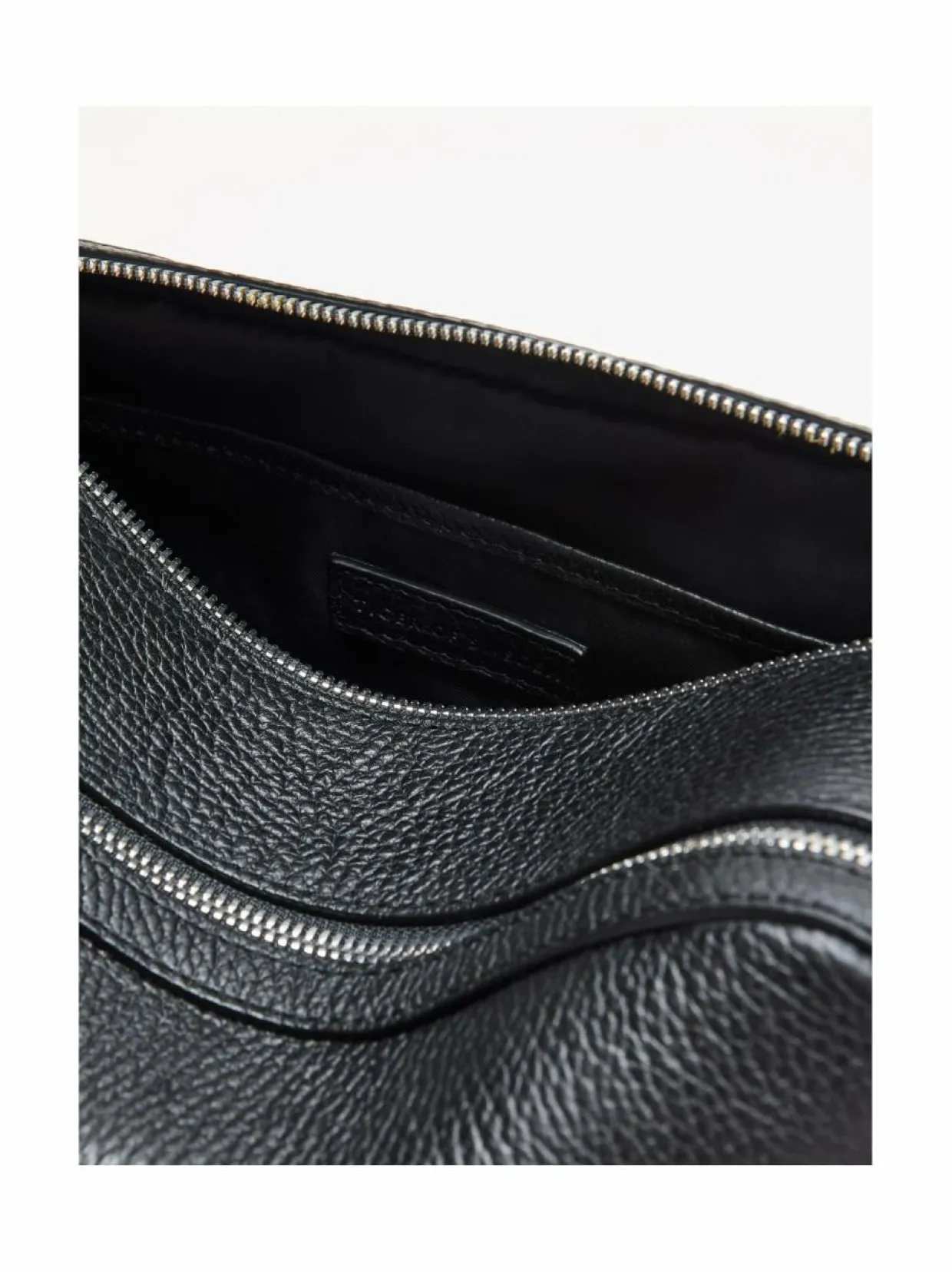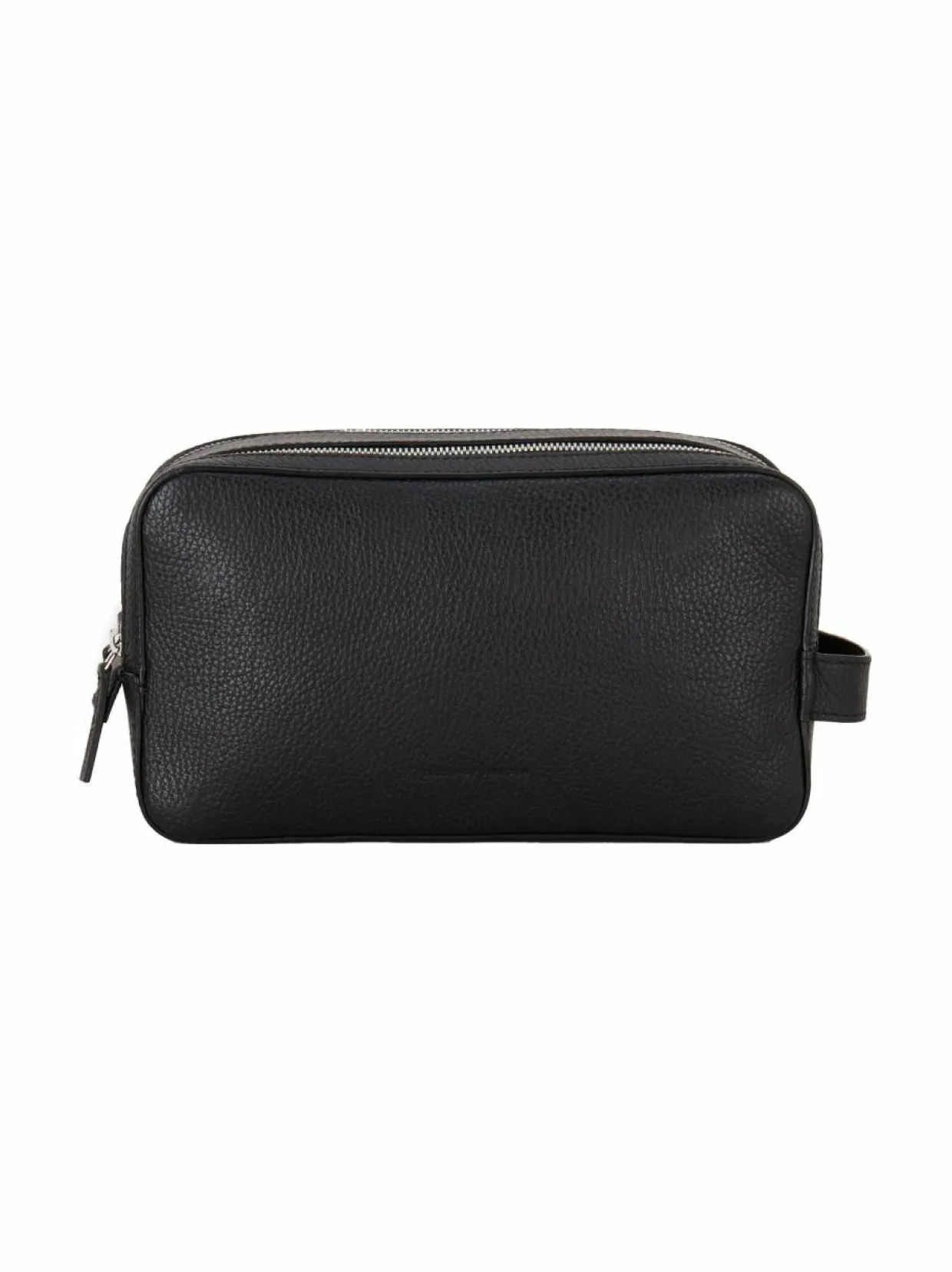 Tiger of Sweden Wynd -toilettilaukussa on hienokuvioinen nahkapinta. Tilava toilettilaukku suljetaan vetoketjulla. Sisäpuolella on avoimen tilan lisäksi tasku pienille tavaroille.