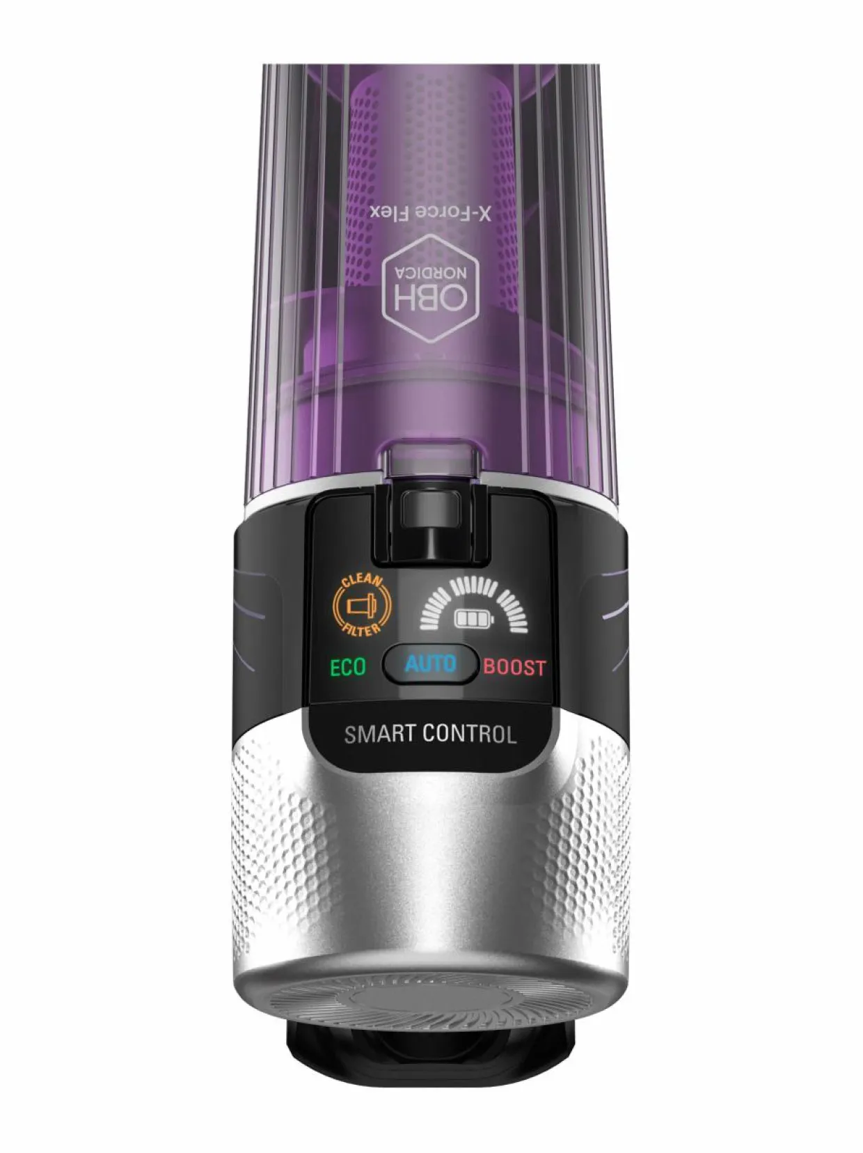 OBH Nordica X-Force Flex 9.60 Essential on kevyt imuri. Kädessä pidettävä rikkaimuri painaa vain 1,1 kg. Rikkaimurin käyttö onnistuu helposti yhdellä kädellä ja saat siitä tukevan otteen. Imurin paino varsi-imurina on 2,2 kg. Ainutlaatuisen Flex-varren ansiosta pääset imuroimaan helposti vaikeatkin kohdat, kuten pöytien ja sohvien alle konttaamatta lattialla – sinun ei tarvitse kumartua, koska pölynimurin varsi taittuu ja tekee sen puolestasi.