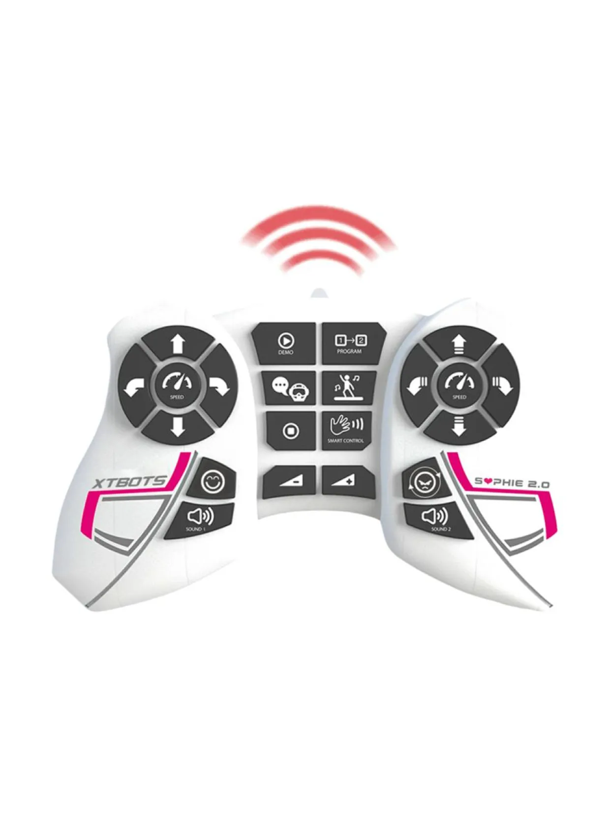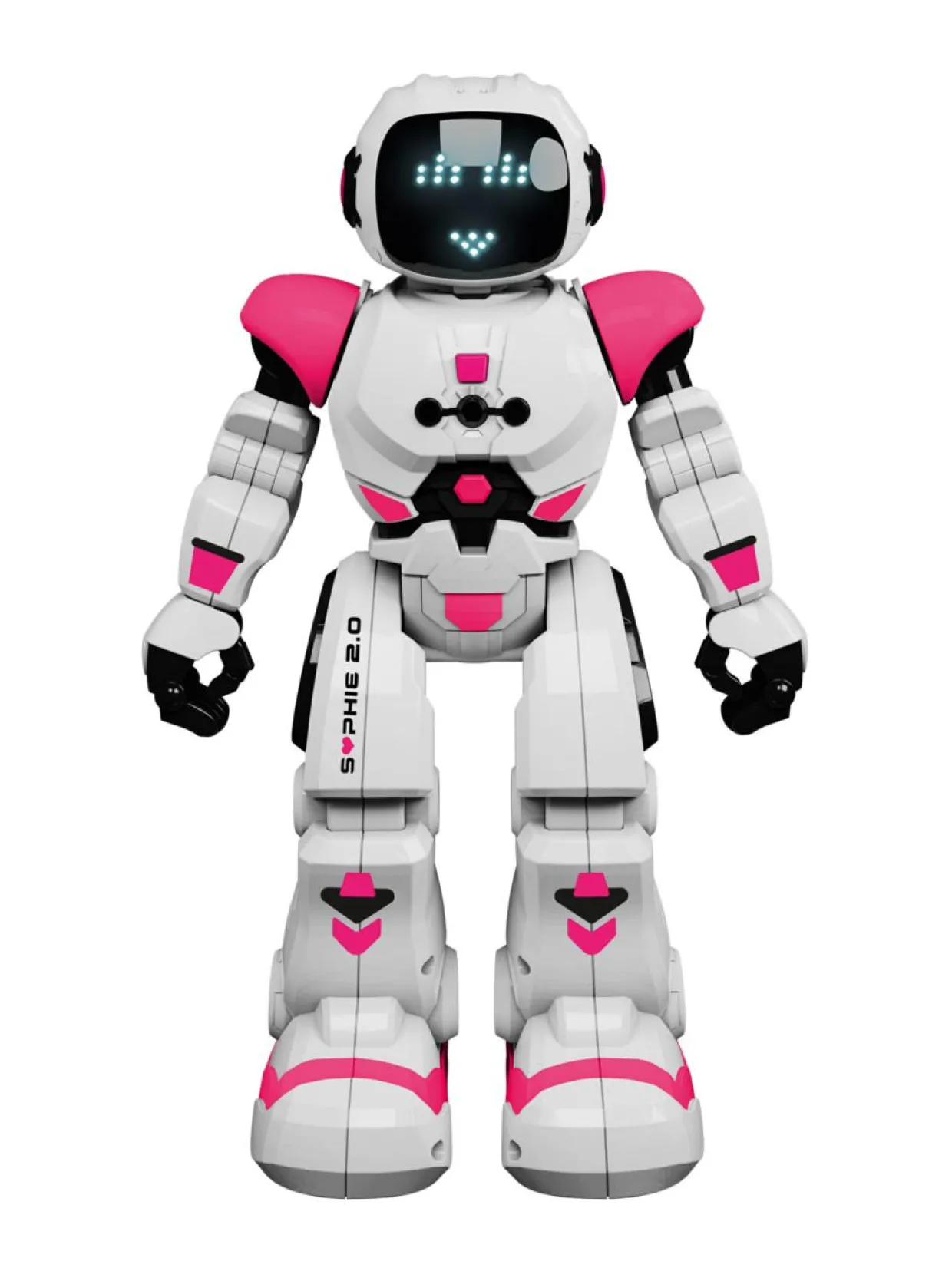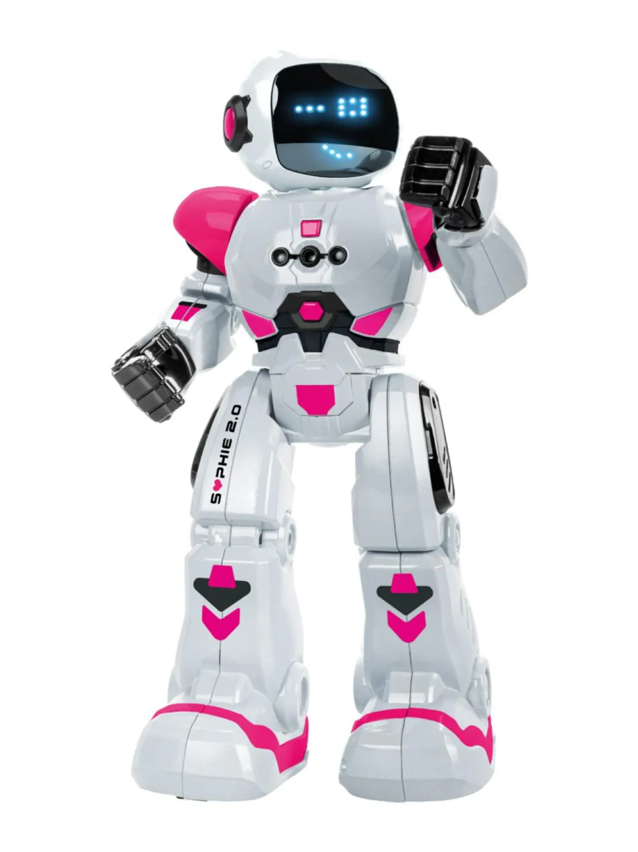Uuden sukupolven robotit ovat täällä! Tapaa Sophie 2.0, jonka kanssa vietät hauskoja hetkiä oppimalla ohjelmointia ja leikkimällä uskomattomia seikkailuja! Ohjelmoi tai ohjaa sitä kauko-ohjaimen avulla. Voit ohjata sitä jopa käsiesi liikkeillä SMART CONTROL -teknologian ansiosta. Voit ohjelmoida yhteensä jopa 50 toimintoa, koska robotissa on kaksi liiketilaa (kävely ja liukuminen), kaksi nopeutta, yli 20 toimintoa, tanssitila ja 20 ilmettä. Kaiken tämän lisäksi robotissa on lukemattomia älykkäitä antureita ja se pitää robottiääniä. Kaikki tämä johdattaa sinut robotiikan maailmaan yksinkertaisella ja hauskalla tavalla. Robotti ladataan USB-laturilla. Nämä uskomattomat robotit ovat innostavia ja herättävät mielikuvituksesi ja tarjoavat loputtomasti mahdollisuuksia hauskanpitoon. Ohjelmoi, tanssi, naura ja leiki Sophie 2.0:n kanssa!