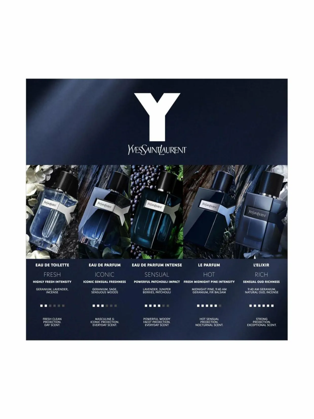 Y LE PARFUM, uusi itseään toteuttavan miehen tuoksu, joka on intensiivisen sinisen yön ruumiillistuma. Mestariparfymööri Dominique Ropionin valmistaman ainutlaatuisen fougere-tuoksun valkoisten ja tummien sävyjen välinen jännite ilmentää aistillista raikkautta. ERITTÄIN VIRKISTÄVÄ. INTENSIIVISEN KUUMA.