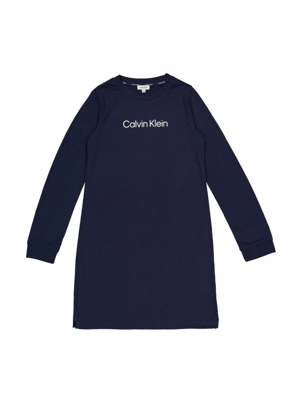 Calvin Kleinin mukava, minimalistinen yömekko lapsille. Mekon rintaa somistaa logoteksti ja helman sivuilla on pienet halkiot. Hihansuissa ja pyöreässä pääntiessä on resorit.