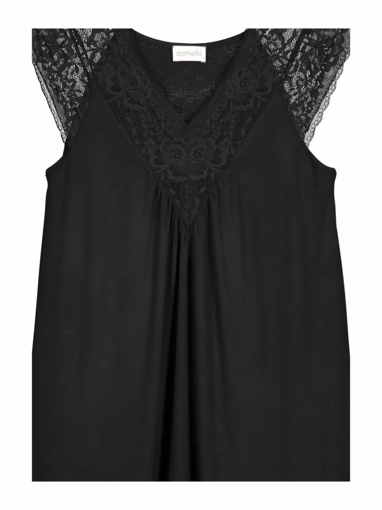 Damellan pitsisomisteinen yömekko luo elegantin lookin. Se on ihanteellinen valinta nukkumiseen ja rentoon oleiluun kotona. Materiaali on silkkimäistä viskoosia, johon on lisätty myös joustoa käyttömukavuuden takaamiseksi.